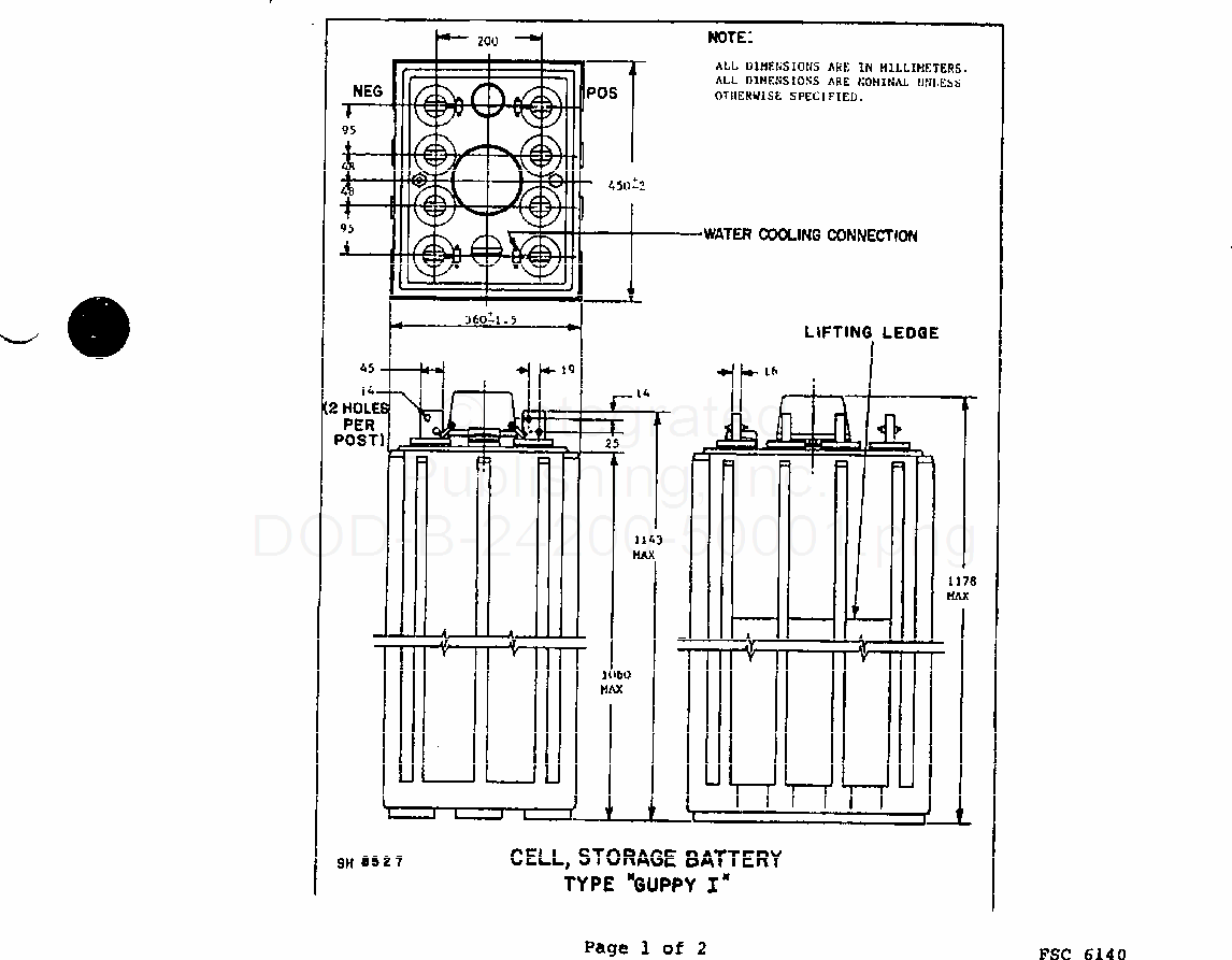 Battery Cells And Elements, Lead-Acid, Lead-Antimony, Main Storage, Submarine, Type Guppy I (Metric)